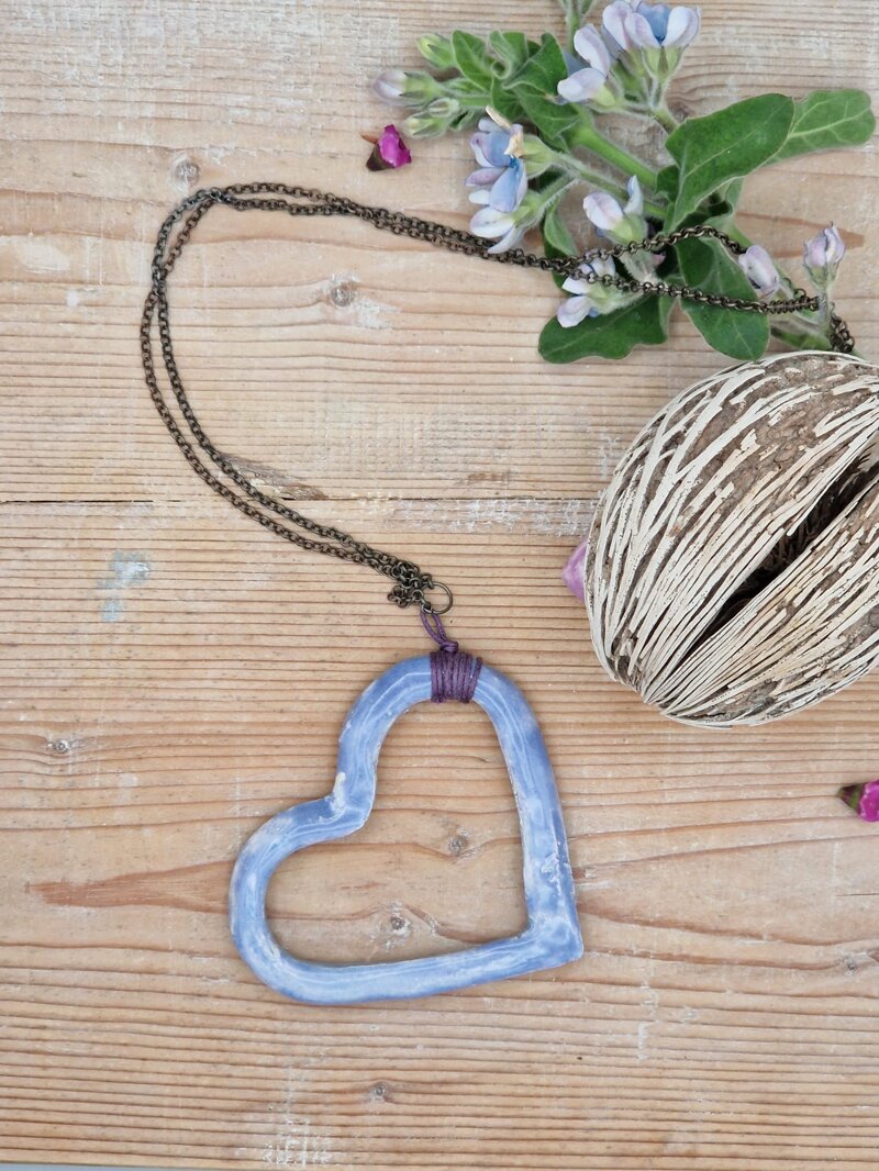 Presentiamo la nostra collana con ciondolo cuore in ceramica raku. Ogni ciondolo è realizzato a mano, rendendo